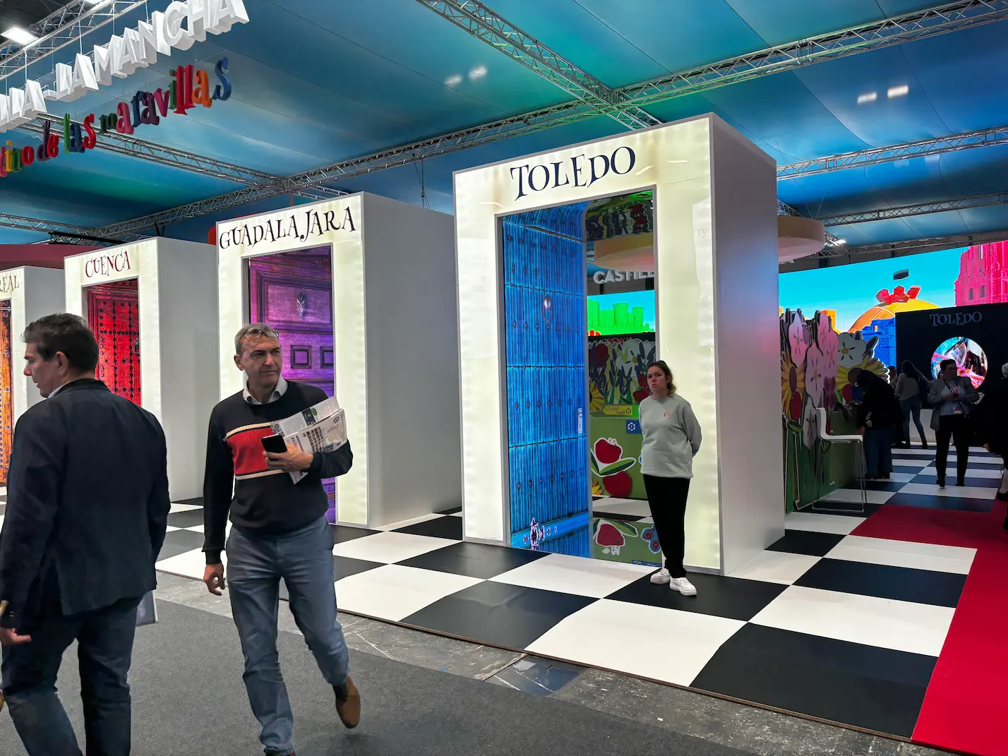 Idea creativa de comunicación de Promoción de Turismo de Castilla-La Mancha y puesta en escena con el diseño del stand en la Feria Internacional de Turismo (Fitur) Madrid (España).