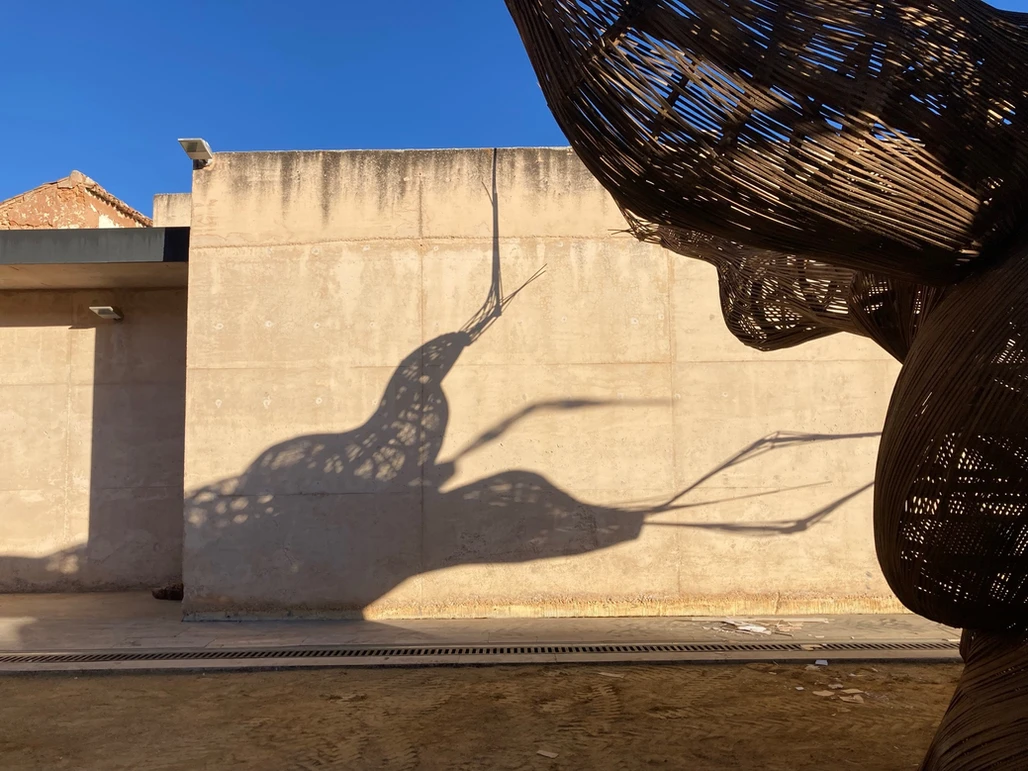 Escultura para Museo del Vino de Valdepeñas. Realizada en listones de madera de cerezo.